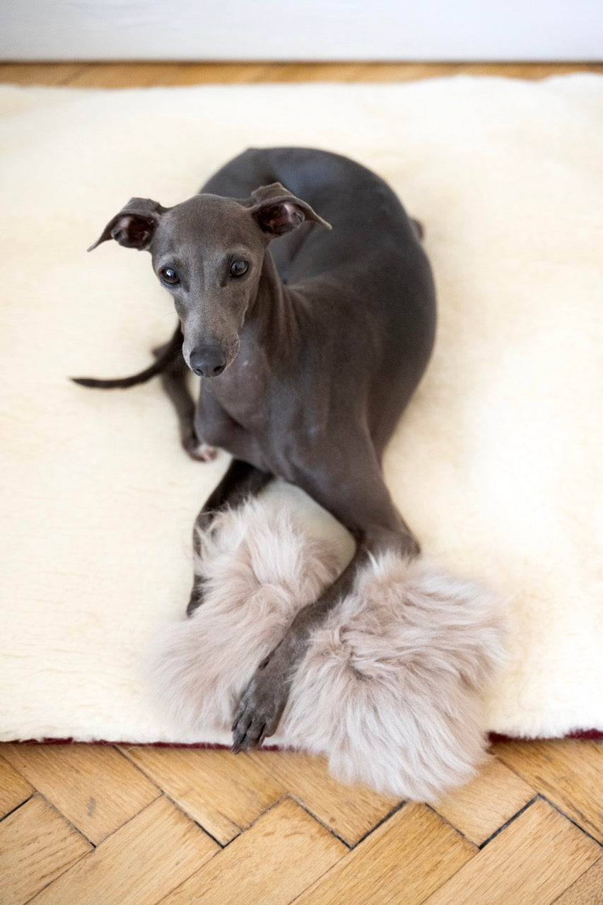 It’s soft. It dings. It’s stuffed with our own studio offcuts. This bell-filled sheepskin bone is a sensory dream for dogs who love to chew, chase, and play the natural way.